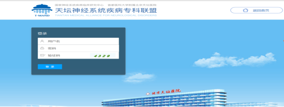 1.登录天坛神经系统疾病专科联盟网址http://58.87.68.206/。