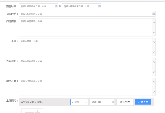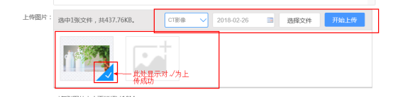 注意:上传图片流程→选择上传图片类型(CT/MR/血管/其他)→填写日期→选择文件→开始上传